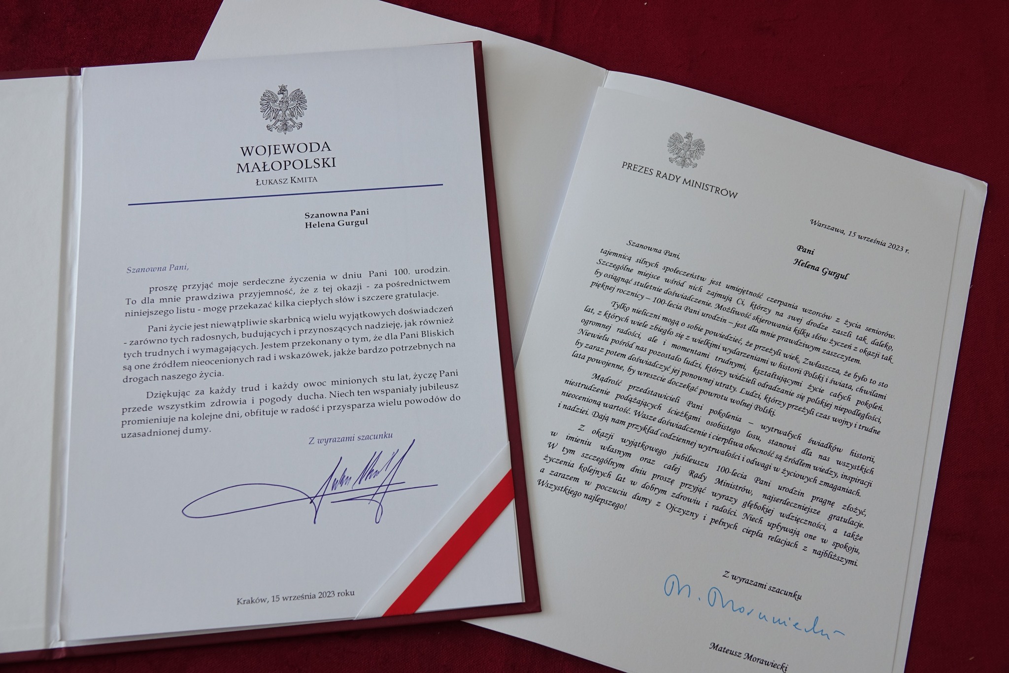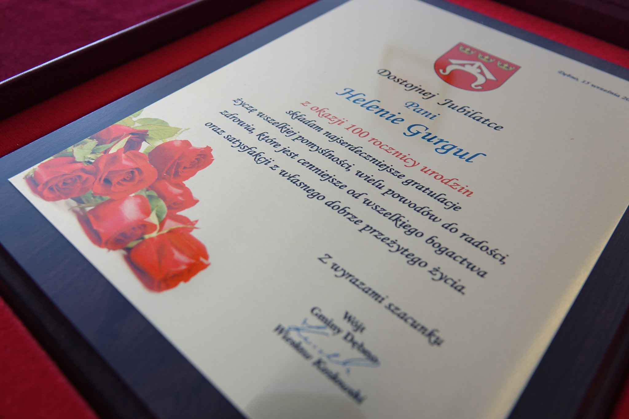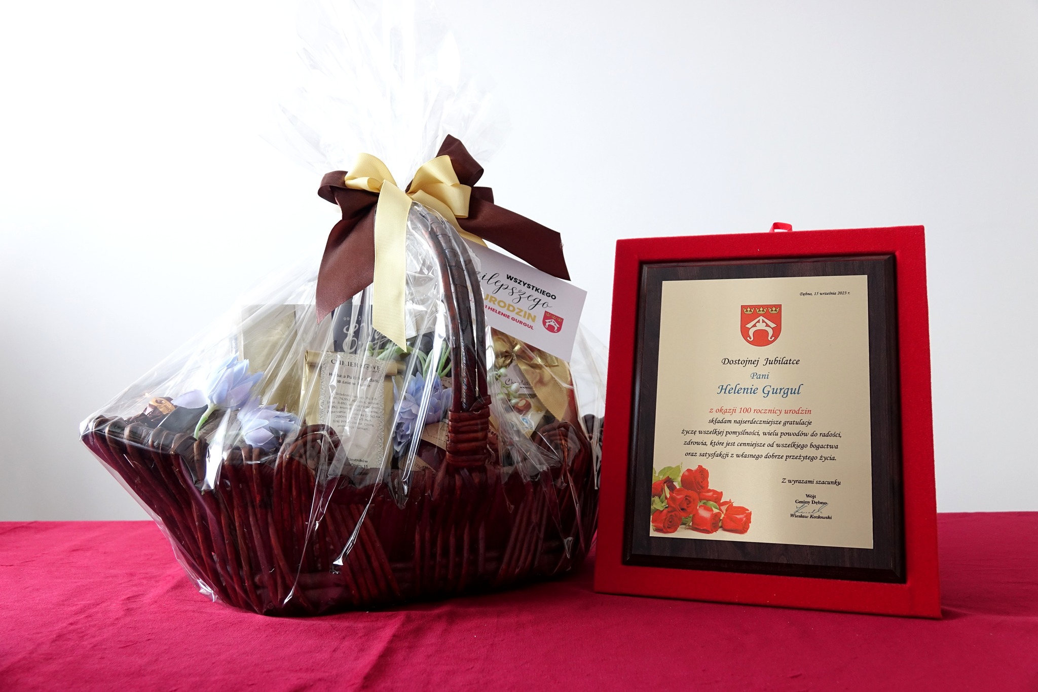 Na tę okoliczność list gratulacyjny wystosował do Pani Heleny Premier Rzeczypospolitej Polskiej Mateusz Morawiecki, Wojewoda Małopolski Łukasz Kmita oraz pamiątkowy grawerton Wójt Gminy Dębno Wiesław Kozłowski.