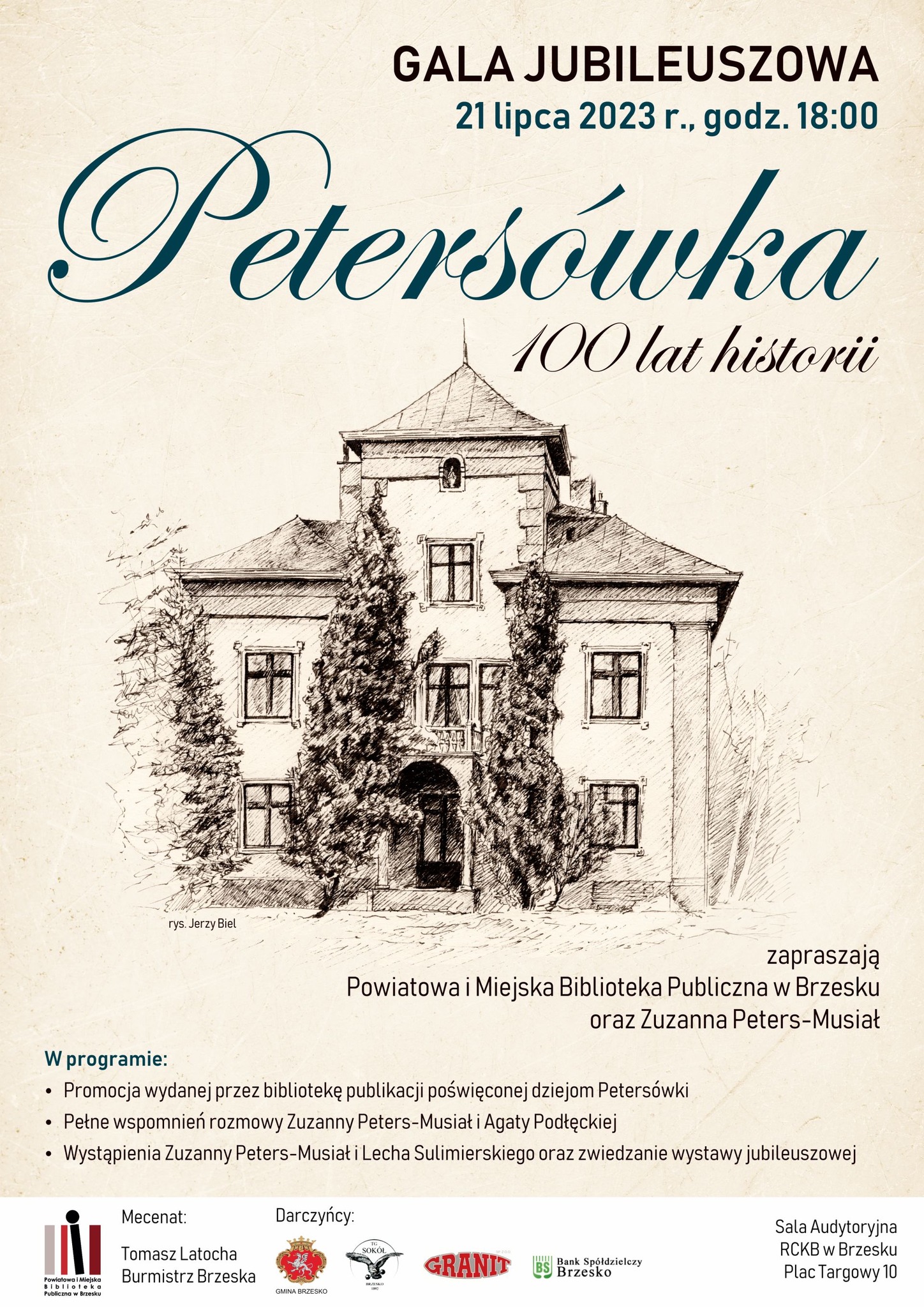 Będzie to wieczór pełen wspomnień, nie tylko o rodzinie, ale też o dawnym Brzesku i jego mieszkańcach. W programie wydarzenia zaplanowano także promocję wydanej przez bibliotekę publikacji poświęconej dziejom Petersówki, którą będzie można wówczas bezpłatnie odebrać oraz otwarcie wystawy jubileuszowej.