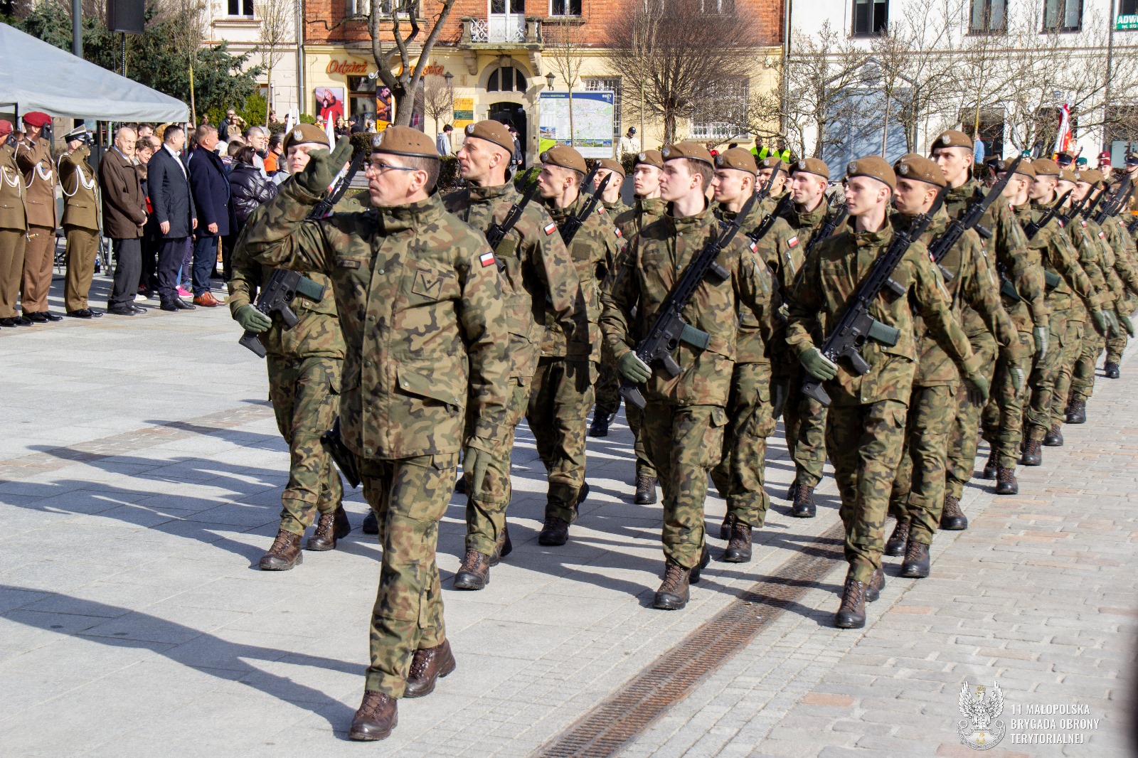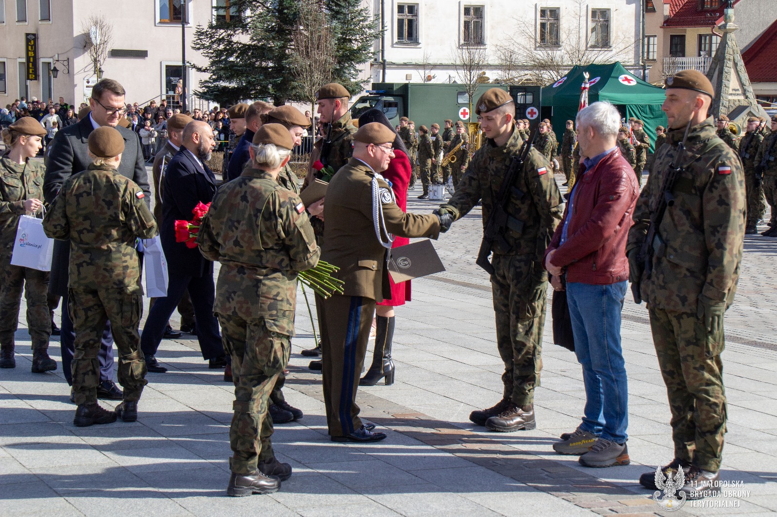 – „Przysięga wojskowa jest jednym z najważniejszych i najbardziej podniosłych wydarzeń w życiu każdego żołnierza momentem który na zawsze pozostaje w pamięci. Przysięga złożona tu na myślenickiej ziemi ma wymiar szczególny Miasto Myślenice dwukrotnie było brutalnie pacyfikowane przez Niemców, lecz opór jego mieszkańców przeciw zarazie spod znaku swastyki nigdy nie osłabł” powiedział Dowódca 11 MBOT płk. Marcin SIUDZIŃSKI.