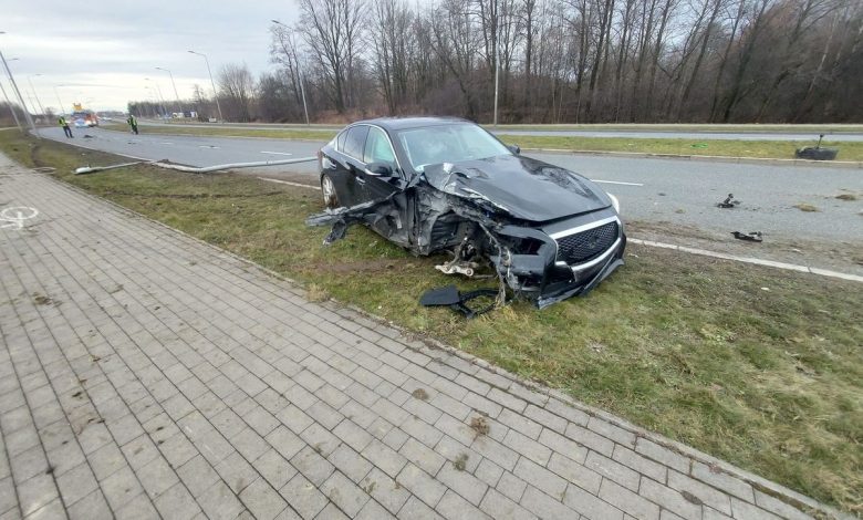 Kilkanaście minut po siódmej rano na alei Jana Pawła II w Tarnowie w sobotę 18.02 zderzyły się dwa samochody osobowe. Jedno z nich zostało wyrzucone poza pas drogowy i dachowało na pasie zieleni obok drogi technicznej. Powiadomieni zostali ratownicy medyczni, którzy udzielali pomocy poszkodowanej kobiecie. Jej samochód został wypchnięty poza jezdnię i dachował. Kobieta z urazami wewnętrznymi, uskarżając się na bóle całego ciała trafiła do tarnowskiego szpitala, gdzie okazało się, że ma poważne obrażenia wewnętrzne oraz złamaną kość łopatki. Na miejscu pozostali dwaj mężczyźni, którzy jechali Infiniti. Policjanci obsługujący to zdarzenie ustalali jego okoliczności.