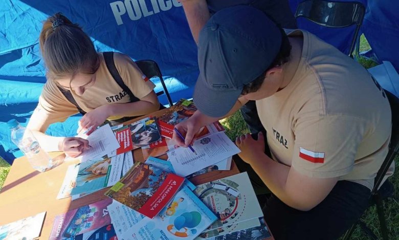 Uczestnicy pikniku chętnie odwiedzali przygotowany przez policjantów namiot profilaktyczny, w którym znajdowało się stoisko z materiałami informacyjno-edukacyjnymi. Mundurowi rozdawali ulotki seniorom z cennymi poradami jak ustrzec się przed oszustami. Funkcjonariusze opowiadali o tym, w jaki sposób działają oszuści oraz jakie metody najczęściej stosują, aby wyłudzić od starszych osób pieniądze. Policjanci przekazywali również rady i wskazówki odnośnie bezpiecznego wypoczynku, szczególnie nad wodą. Poruszyli również zagadnienia związane z cybeprzestępczością oraz zagrożeniami w sieci. W rozmowie z mundurowymi osoby chętne mogły dowiedzieć się, na czym polega praca w Policji, jak wygląda procedura przyjęcia do służby oraz etapy postępowania kwalifikacyjnego. Nie brakowało również chętnych, aby zrobić sobie pamiątkowe zdjęcie na policyjnym motocyklu.