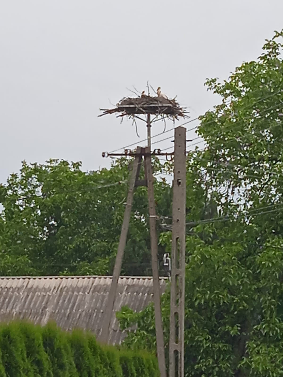 Trzeba mieć nadzieję, że pracownicy Tauronu czuwają nad gniazdem i podjęli decyzję o zamontowaniu platformy właśnie w tym miejscu nie po to, by znowu „eksmitować” bociany w inne miejsce. Należy dodać, że mimo tak skromnych warunków mieszkaniowych (nowe gniazdo) w gnieździe pojawiły się młode bocianki.