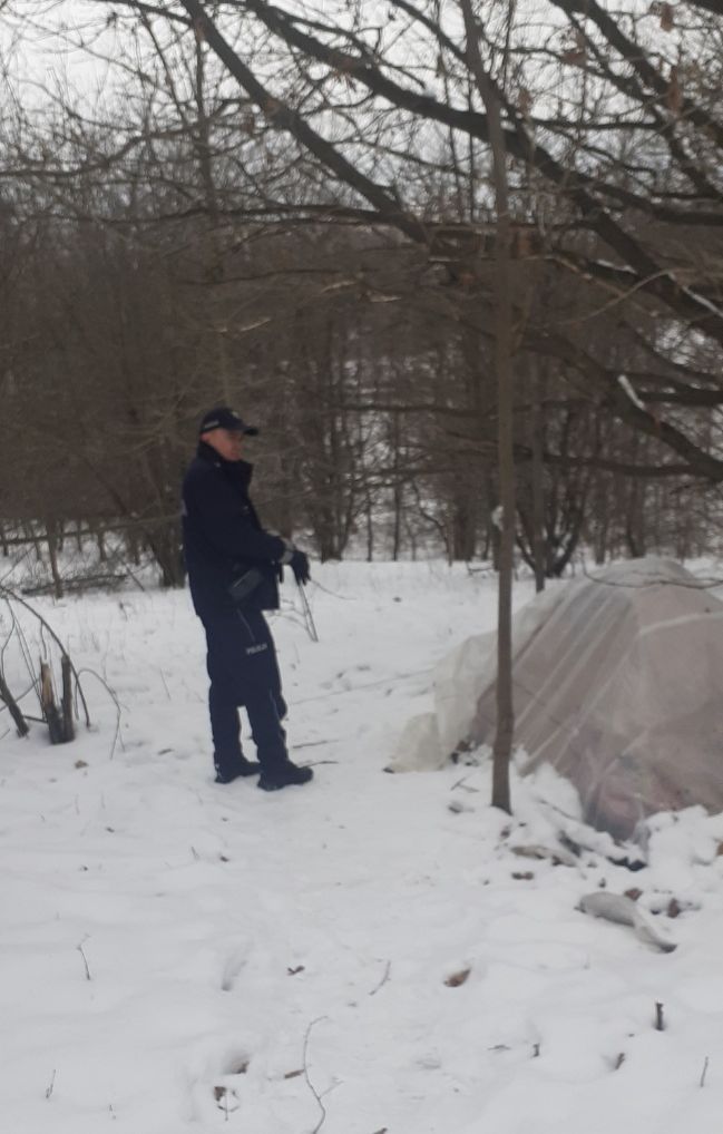 Tarnowianin bez stałego miejsca zamieszkania wybrał namiot, jako swój dom. Postawiony w zagajniku leśnym w północnej części miasta służył mu za schronienie. W ostatnich dniach odwiedzili go policjanci i przetransportowali go do ogrzewalni, by choć na chwilę mógł się ogrzać.