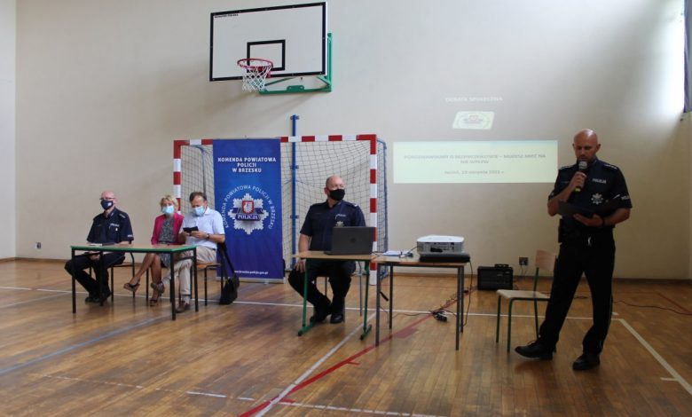 Debatę rozpoczął i przywitał gości Naczelnik Wydziału Prewencji, który następnie przedstawił schemat organizacyjny brzeskiej jednostki i pełniących w niej służbę funkcjonariuszy poszczególnych pionów. Po czym omówił nowe formy zgłoszeń niebezpiecznych sytuacji, które każdy obywatel może zgłosić anonimowo za pośrednictwem Internetu: Krajowa Mapa Zagrożeń Bezpieczeństwa, Dzielnicowy Bliżej Nas oraz aplikacja Moja Komenda.