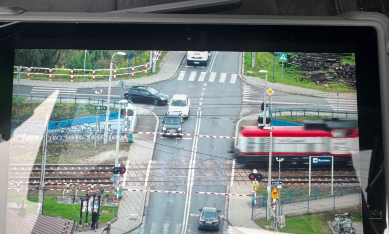 Policyjny dron weryfikował bezpieczeństwo na przejeździe kolejowym w Rzezawie
