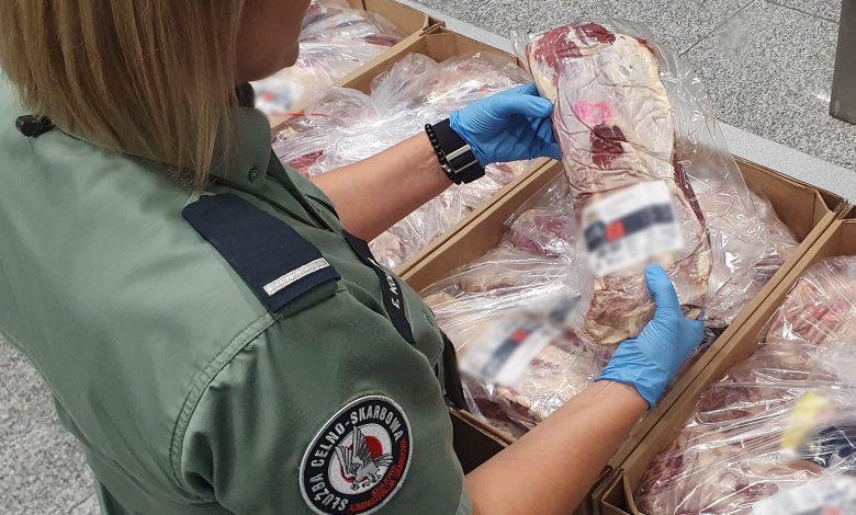 - Funkcjonariusze z Krajowej Administracji Skarbowej odkryli w bagażu pasażerów podróżujących spoza Unii Europejskiej ponad 107 kg surowego mięsa.
