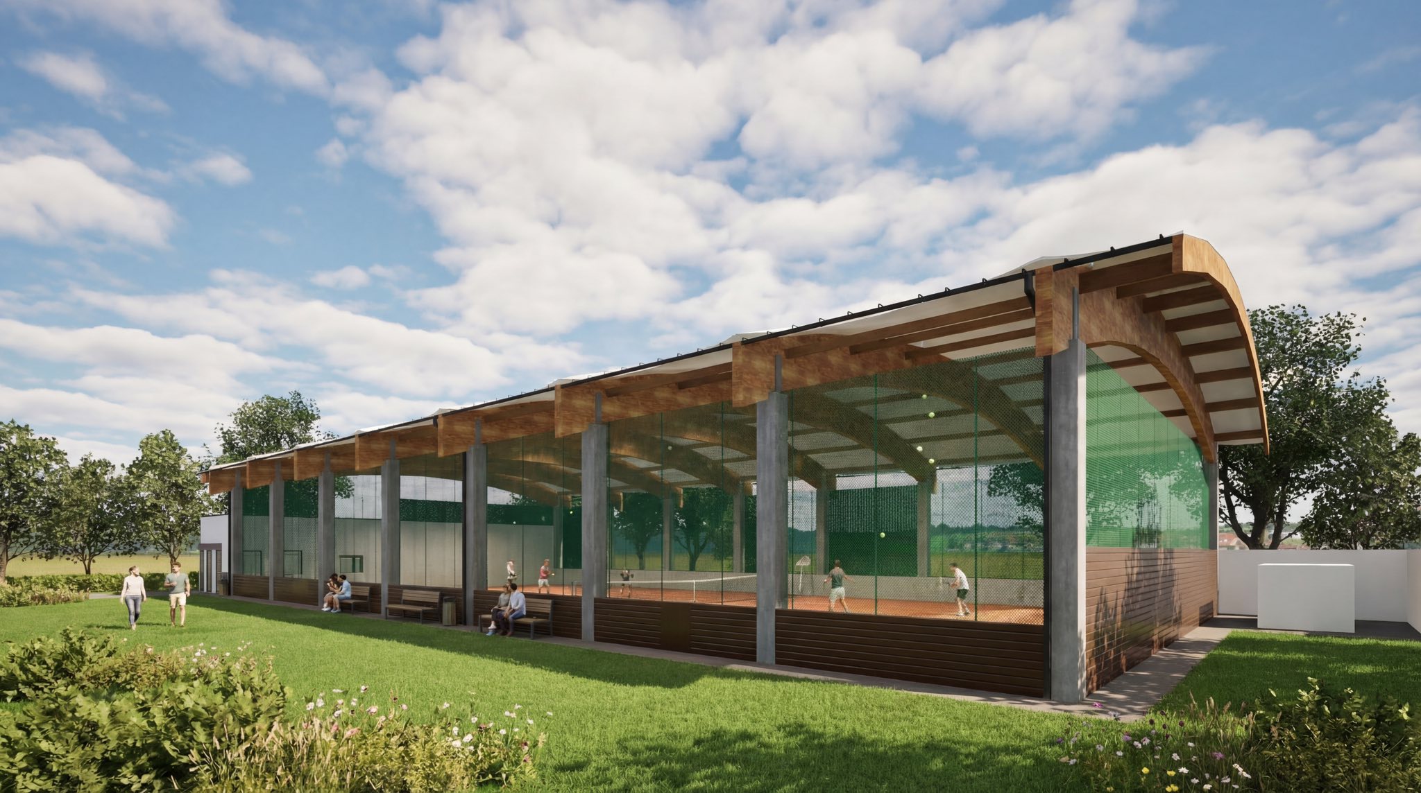 Zadaszona tafla z profesjonalnym agregatem chłodniczym w sezonie zimowym będzie funkcjonować jako lodowisko, natomiast latem jako kort tenisowy ze sztuczną nawierzchnią, co zapewni efektywne, całoroczne wykorzystanie obiektu.