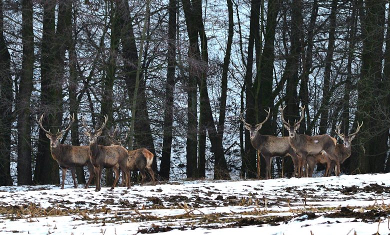 Poranny widok w drodze do pracy – chmara jeleni pomiędzy Jadownikami i Okocimiem