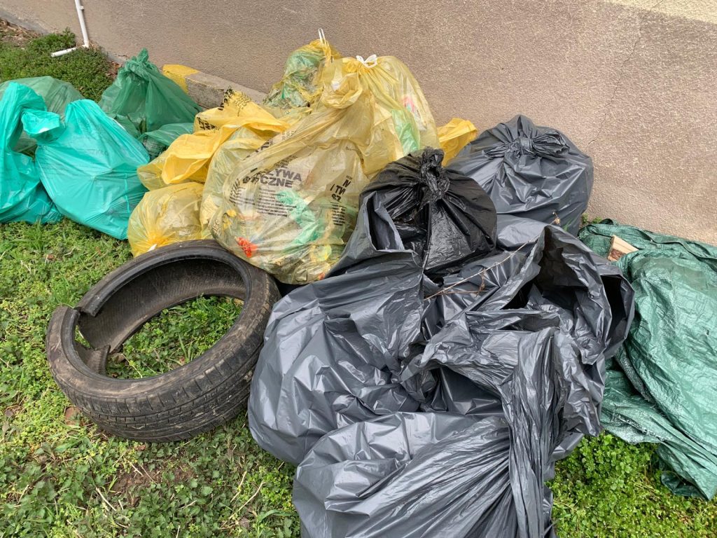 Porządkowano głównie miejsca oddalone od zabudowań — takie, które rzadko są objęte regularnym sprzątaniem. W lesie w Kocieniu, na odcinku około 800 metrów, siedem osób zebrało 3 worki szkła, 3 worki tworzyw sztucznych i puszek, 5 worków odpadów zmieszanych, a także złom i odpady budowlane (2 brodziki(!) oraz wiadra z zaprawą).