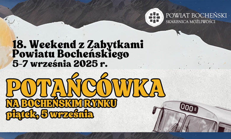 Już w najbliższy piątek, 5 września, Rynek w Bochni wypełni się atrakcjami przygotowanymi w ramach 18. Weekendu z Zabytkami Powiatu Bocheńskiego. Pierwszy dzień wydarzenia upłynie pod znakiem spotkań z historią, kulturą i muzyką, a jego kulminacją będzie potańcówka pod gołym niebem.
