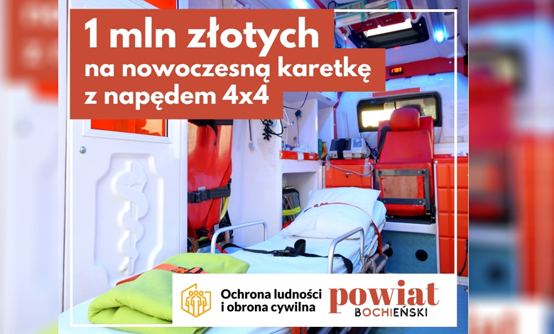 Powiat Bocheński pozyskał 1 mln złotych na zakup karetki z napędem 4×4 dla bocheńskiego szpitala. To kolejne środki, które trafiają do powiatu na ochronę ludności i obronę cywilną. Wcześniej na wsparcie w tym zakresie powiat pozyskał 2,2 miliona złotych.