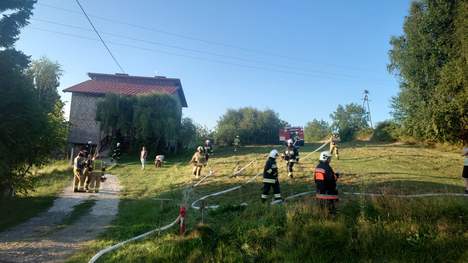 Po dotarciu pierwszych zastępów straży pożarnej na miejsce stwierdzono że pożarem objęta jest jedna kondygnacja murowanego budynku mieszkalnego jednorodzinnego, w którym w chwili pożaru w budynku przebywały dwie osoby dorosłe. Jedna osoba – kobieta ewakuowała się samodzielnie. Niestety mężczyzna w wieku około 63 lat zginął w tym pożarze.