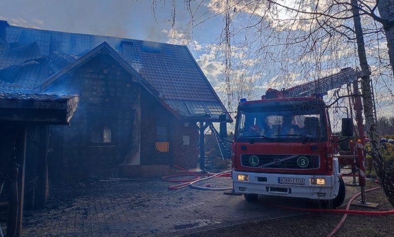 Pożar domu w Mokrzyskach. Ogień strawił dach budynku