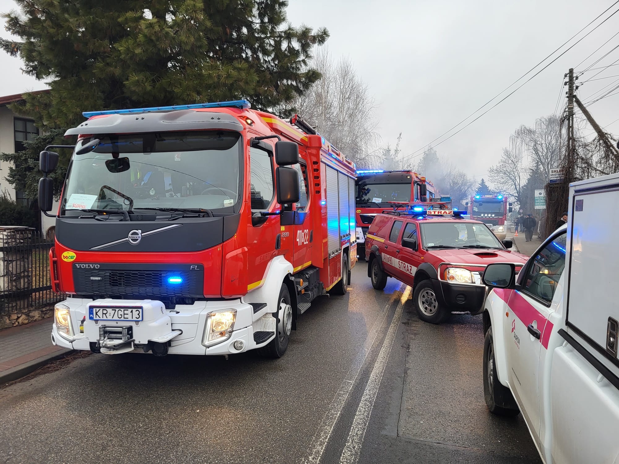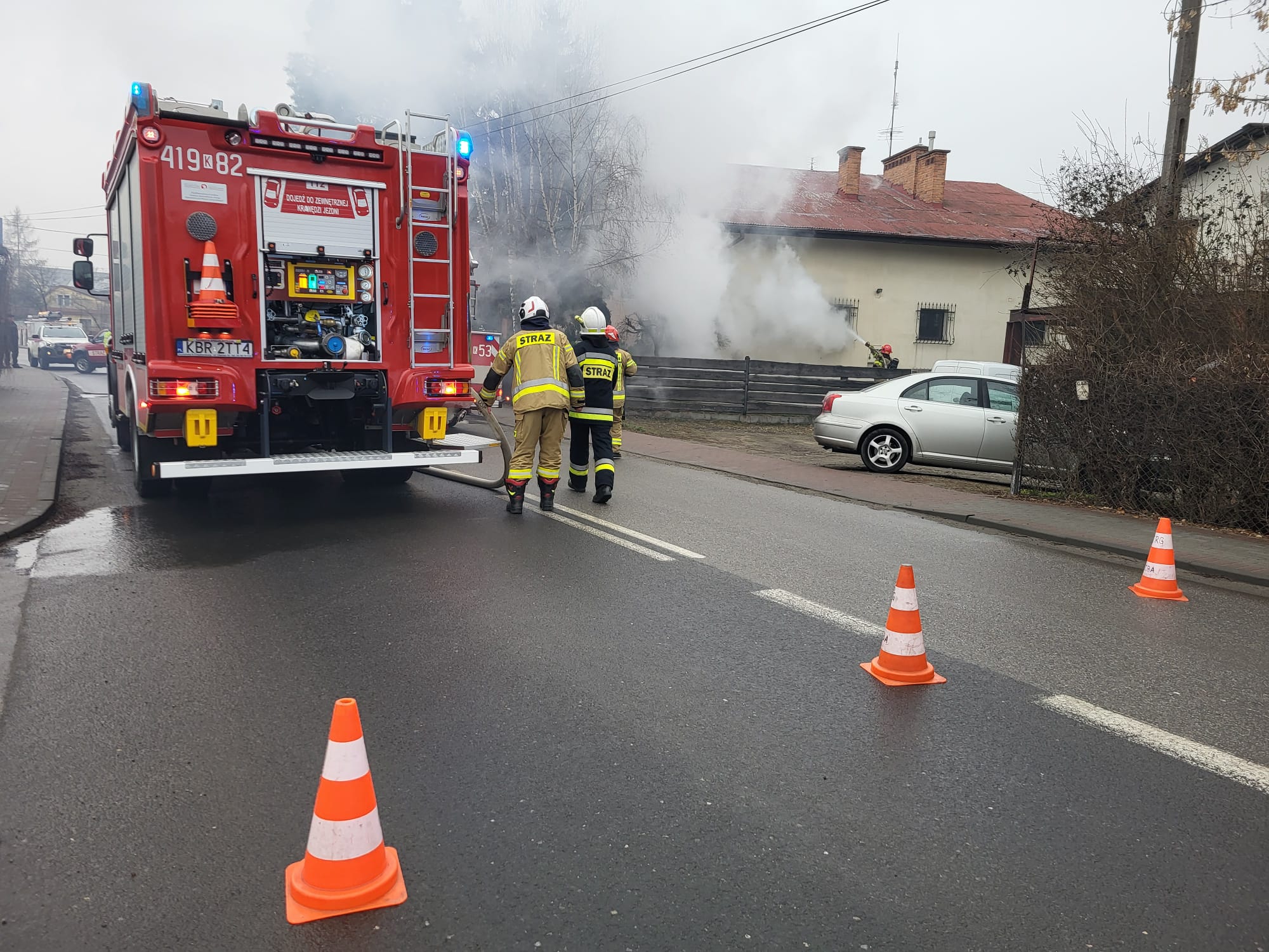 Na miejsce zdarzenia skierowano strażaków z PSP Brzesko (4 zastępy) oraz druhów z OSP Jadowniki i OSP Szczepanów, a także Pogotowie Gazowe, Pogotowie Energetyczne i Policję.