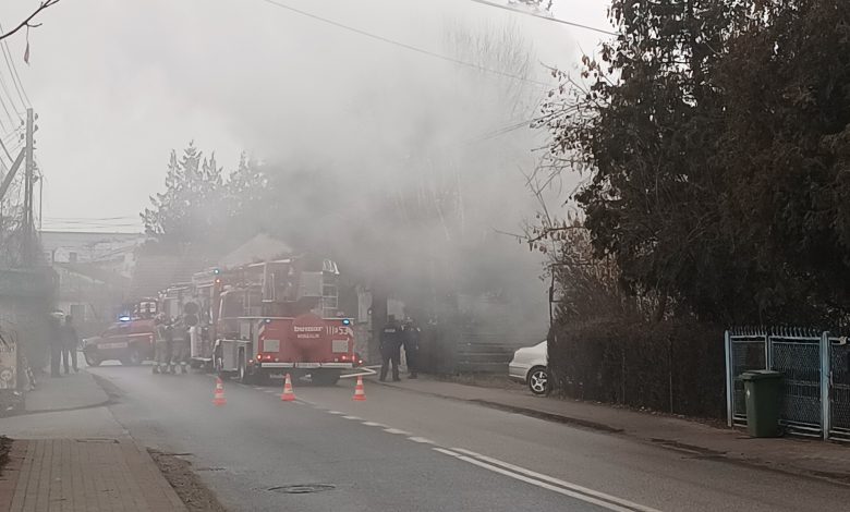 Ze względu na silne zadymienie strażacy działają w sprzęcie ochrony dróg oddechowych.