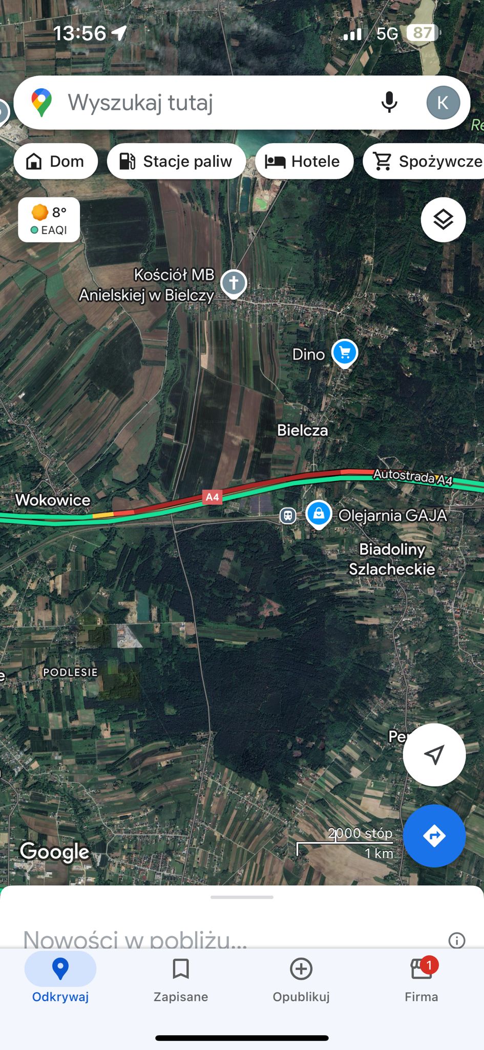 Mapa natężenia ruchu – autostrada A4 na wysokości Wokowic / 17 listopada 2024 r. godz. 13.56