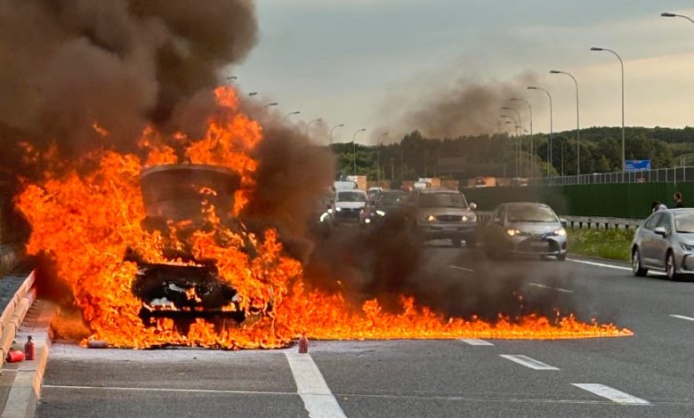 W piątek 7 czerwca 2024 r. około godziny 20 na autostradzie A4 na wysokości Wierzchosławic doszło do pożaru samochodu osobowego.
