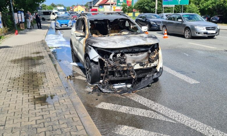 We wtorek 28 maja 2024 r. około godziny 15 na ul. Mickiewicza w Brzesku (w pobliżu skrzyżowania z ulicą Browarną) doszło do pożaru suv-a. Ogień zajął komorę silnika oraz uszkodził wnętrze pojazdu.