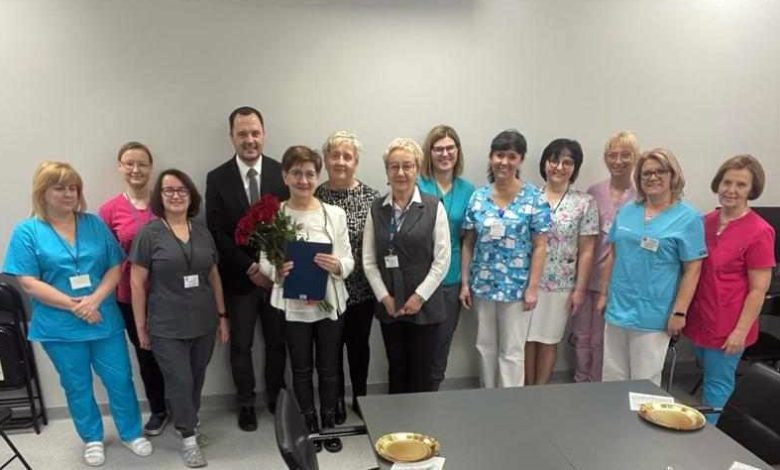Były kwiaty, słodki poczęstunek, ale przede wszystkim podziękowania. Po 20-latach pracy  na oddziale noworodków z bocheńskim szpitalem pożegnała się Anna Jaworska. Pielęgniarkę oddziałową żegnał dyrektor Jarosław Kycia, ale też pielęgniarki z wszystkich innych oddziałów lecznicy.