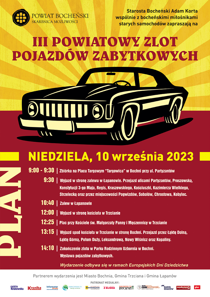 Prawie 140 pojazdów zabytkowych weźmie udział w tegorocznym Zlocie Pojazdów Zabytkowych. Trzeci zlot miłośników motoryzacji już w najbliższą niedzielę 10 września, a jego uczestnicy wyruszą z Bochni i przejadą przez Łapanów i Trzcianę, by następnie wrócić do Parku Rodzinnego Uzbornia, gdzie odbędzie się prezentacja i wręczenie nagród.