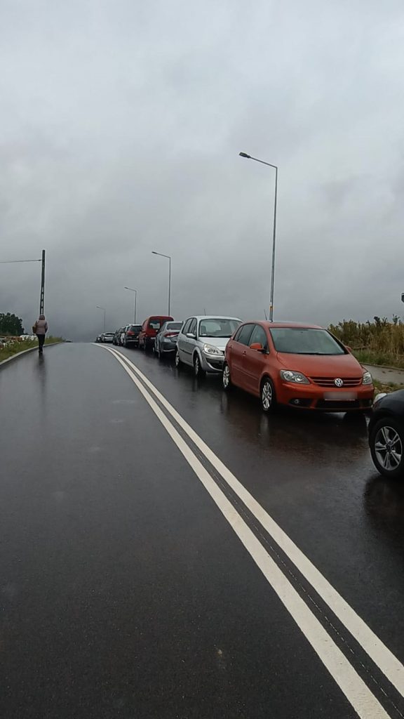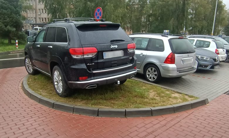 Kierowcy krążą po przepełnionych próbując znaleźc miejsce do zaparkowania. Ci mniej cierpliwi parkują gdzie popadnie – nawet na nowych trawnikach.