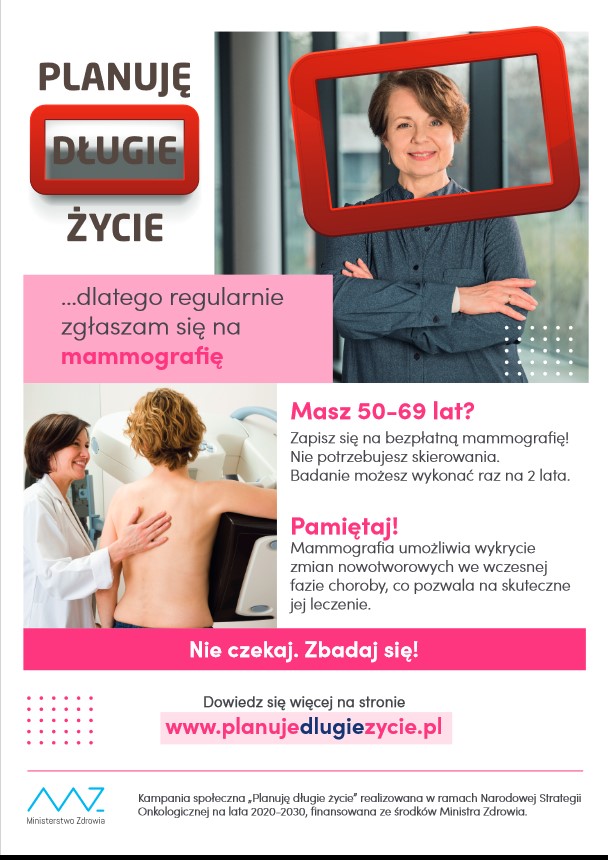 Dlatego zapraszamy kobiety w wieku 50-69 lat na bezpłatną mammografię piersi.