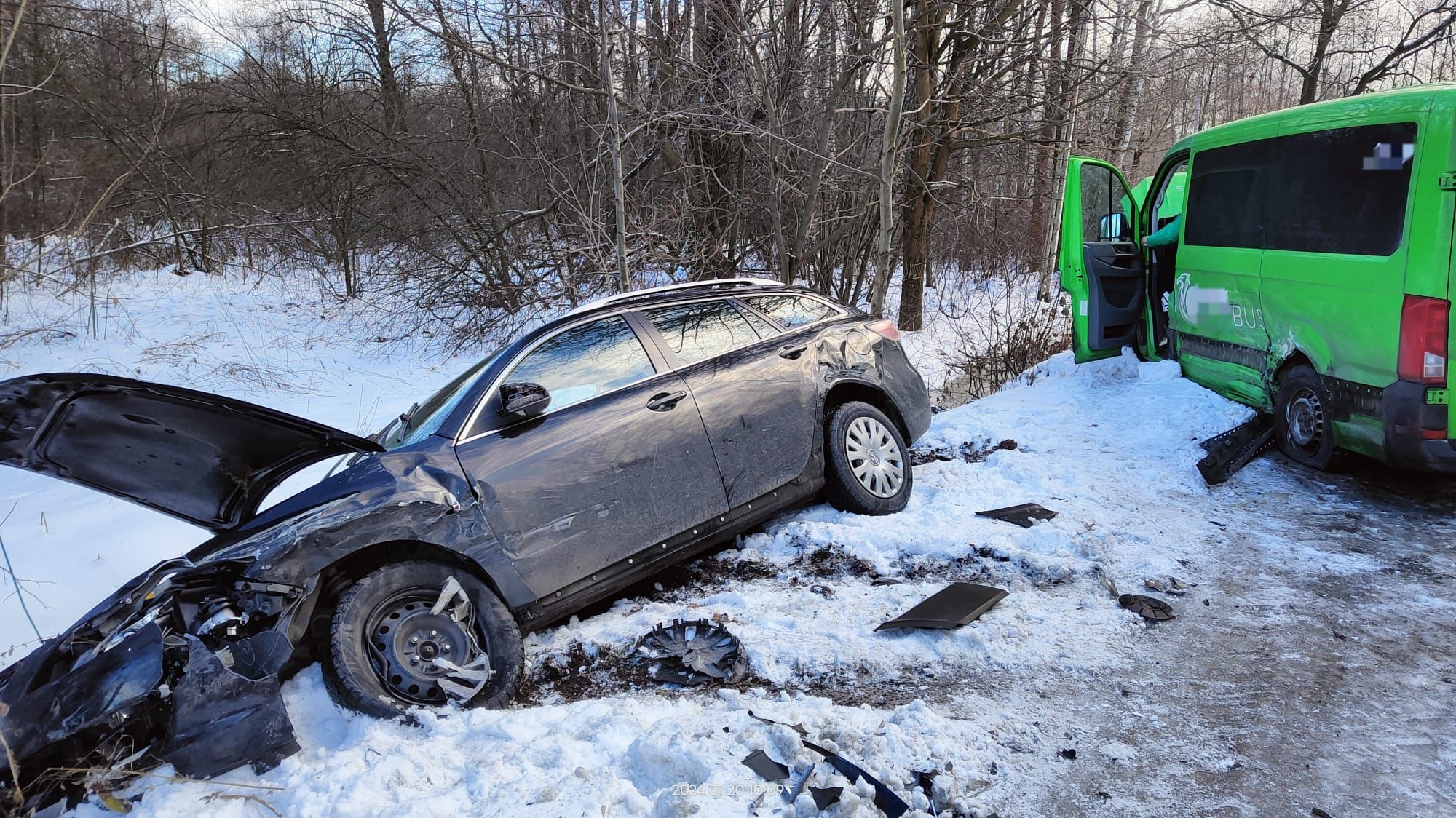Przyborów/ Zderzenie busa i osobówki / 20 stycznia 2024 r.