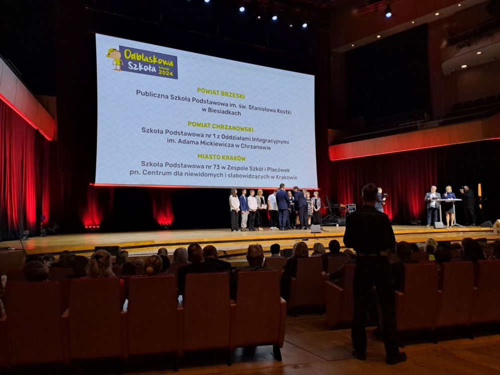 W grudniu 2024r. nastąpiło rozstrzygnięcie konkursu i wyłonieni zostali laureaci na szczeblu wojewódzkim. Natomiast w czwartek 20 lutego w Centrum Kongresowym ICE w Krakowie odbyła się uroczysta gala, podczas której wręczone zostały dyplomy i nagrody Laureatom XIV Edycji Małopolskiego Konkursu „Odblaskowa Szkoła”. Nasza szkoła zdobyła tytuł najlepszej szkoły powiatu brzeskiego i delegacja uczniów z klasy 7, wraz z Panią Dyrektor Małgorzatą Wawryką, odebrała grawerowany dyplom nagradzający za osiągnięty sukces. W ten sposób zajęliśmy 23 miejsce w Małopolsce na 154 szkoły biorące udział w Konkursie.