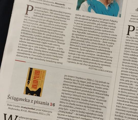 W najnowszym numerze tygodnika „Polityka” znalazła się recenzja „Akuszerek” Sabiny Jakubowskiej. Justyna Sobolewska, która recenzowała książkę przyznała jej wysoką notę – 5/6.