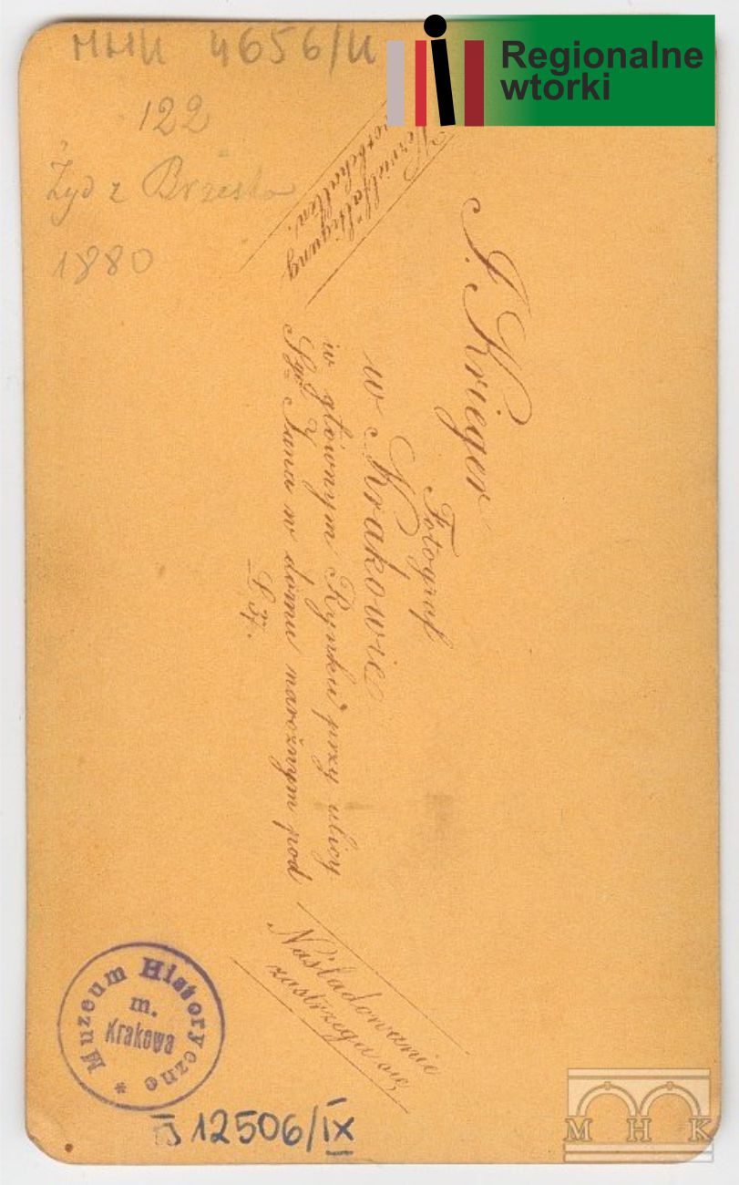 W archiwum cyfrowym Muzeum Historycznego Miasta Krakowa nasz zaprzyjaźniony pasjonat Krzysztof Bogusz wyszukał fotografię związaną z Brzeskiem. To zdjęcie młodego mężczyzny, Żyda z Brzeska w tradycyjnym stroju. Autorem był Natan Krieger – bardzo znany krakowski fotograf żydowskiego pochodzenia. Osobną część dorobku Kriegera stanowią zdjęcia o charakterze etnograficznym, przedstawiające „typy ludowe”.