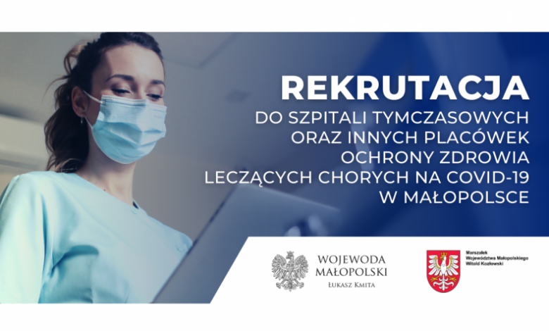 Wystartowała rekrutacja do małopolskich szpitali tymczasowych oraz innych placówek ochrony zdrowia zajmujących się leczeniem COVID-19. Dołącz do zespołu małopolskich szpitali tymczasowych i innych placówek ochrony zdrowia leczących chorych na koronawirusa! Ze względu na coraz większą liczbę zakażeń konieczne jest powiększenie bazy łóżek dla pacjentów z COVID-19.