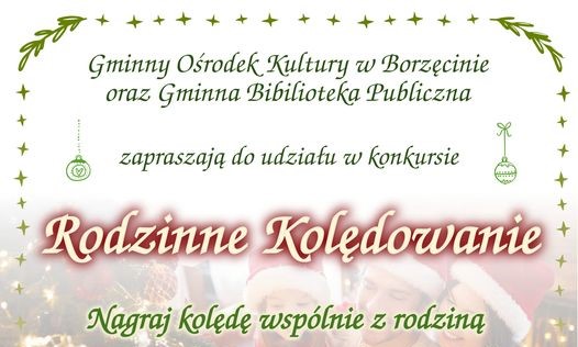 Gminny Ośrodek Kultury w Borzęcinie oraz Gminna Biblioteka Publiczna serdecznie zapraszają mieszkańców gminy Borzęcin do udziału w konkursie „Rodzinne kolędowanie”. Do wygrania nagrody o wartości ponad 1000 zł!