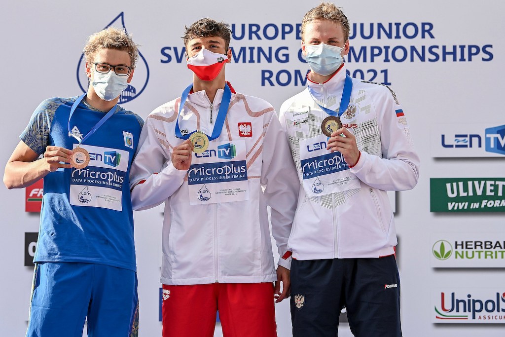 Ksawery Masiuk: tak, miałem najlepszy czas na tym dystansie w Europie. Mistrzostwa zaczęły się dla mnie i dla polskiej ekipy szczęśliwie, bo już na dzień dobry zdobyliśmy brąz w sztafecie 4*100m stylem dowolnym. Przegraliśmy z Rumunią srebro nieznacznie. Potem było tylko lepiej. Ja w kolejnym dniu (8 lipca)wypływałem złoto na 100m stylem grzbietowym i pierwszy raz w życiu usłyszałem Mazurek Dąbrowskiego dla mnie. Wyjątkowa chwila, wyjątkowe wspomnienia, wyjątkowe uczucie. Nasza ekipa zgotowała mi później niesamowite powitanie. W kolejnych dniach zdobyłem jeszcze srebro na 50m stylem grzbietowym, złoto na 200m stylem grzbietowym i wspólnie z kolegami wygraliśmy z Rosją zdobywając Mistrzostwo Europy na 4*100m stylem zmiennym. Wróciłem do Polski z największa liczbą medali zdobytych indywidualnie w historii startów Polaków w Mistrzostwach Europy Juniorów.