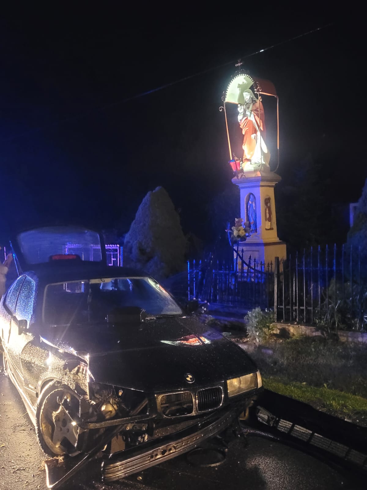 W niedzielę 8 czerwca 2025 r. kilkanaście minut po północy służby ratownicze zostały zadysponowane do wypadku w Szczepanowie. Na ul. ks. Stanisława Stojałowskiego kierujący samochodem osobowym marki BMW stracił panowanie nad pojazdem i uderzył w ogrodzenie posesji znajdujące się tuż przed figurą Pana Jezusa Miłosiernego.