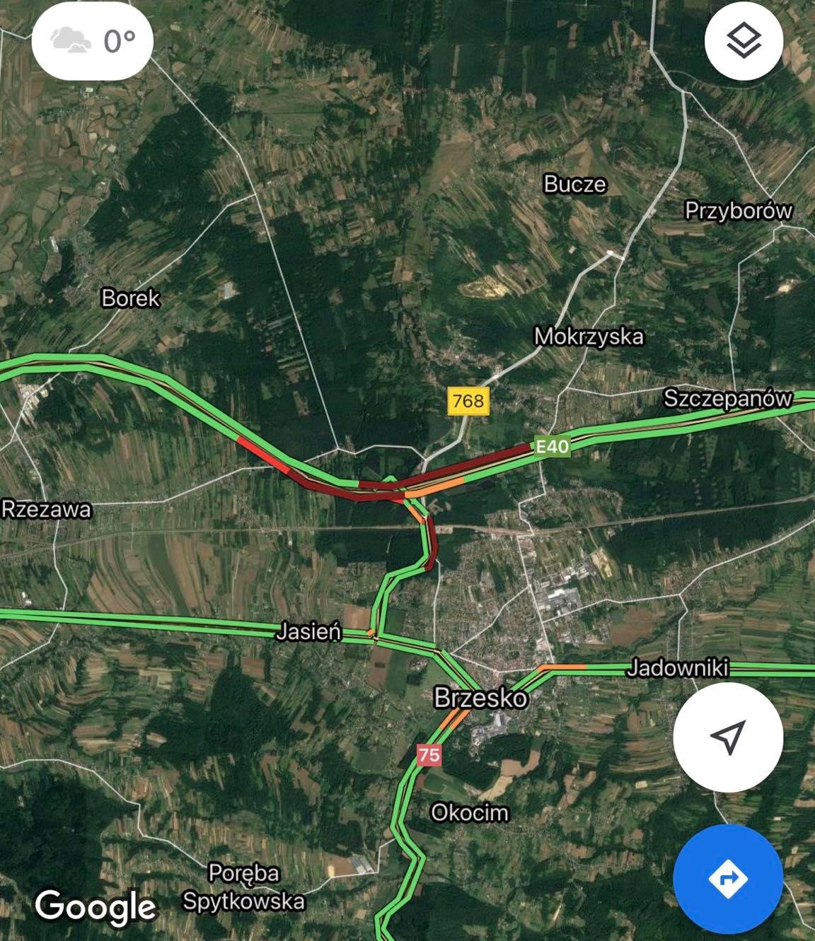 Mapa natężenia ruchu węzeł Brzesko / 29 grudnia 2021 r. godz. 18.20