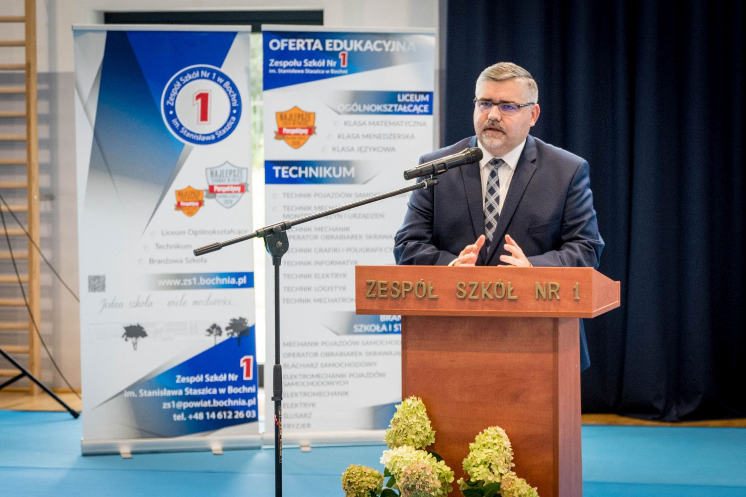 Starosta Bocheński Adam Korta odwiedził nauczycieli i uczniów Zespół Szkół Nr 1 im. Stanisława Staszica w Bochni podczas uroczystości rozpoczynającej kolejny rok szkolny.