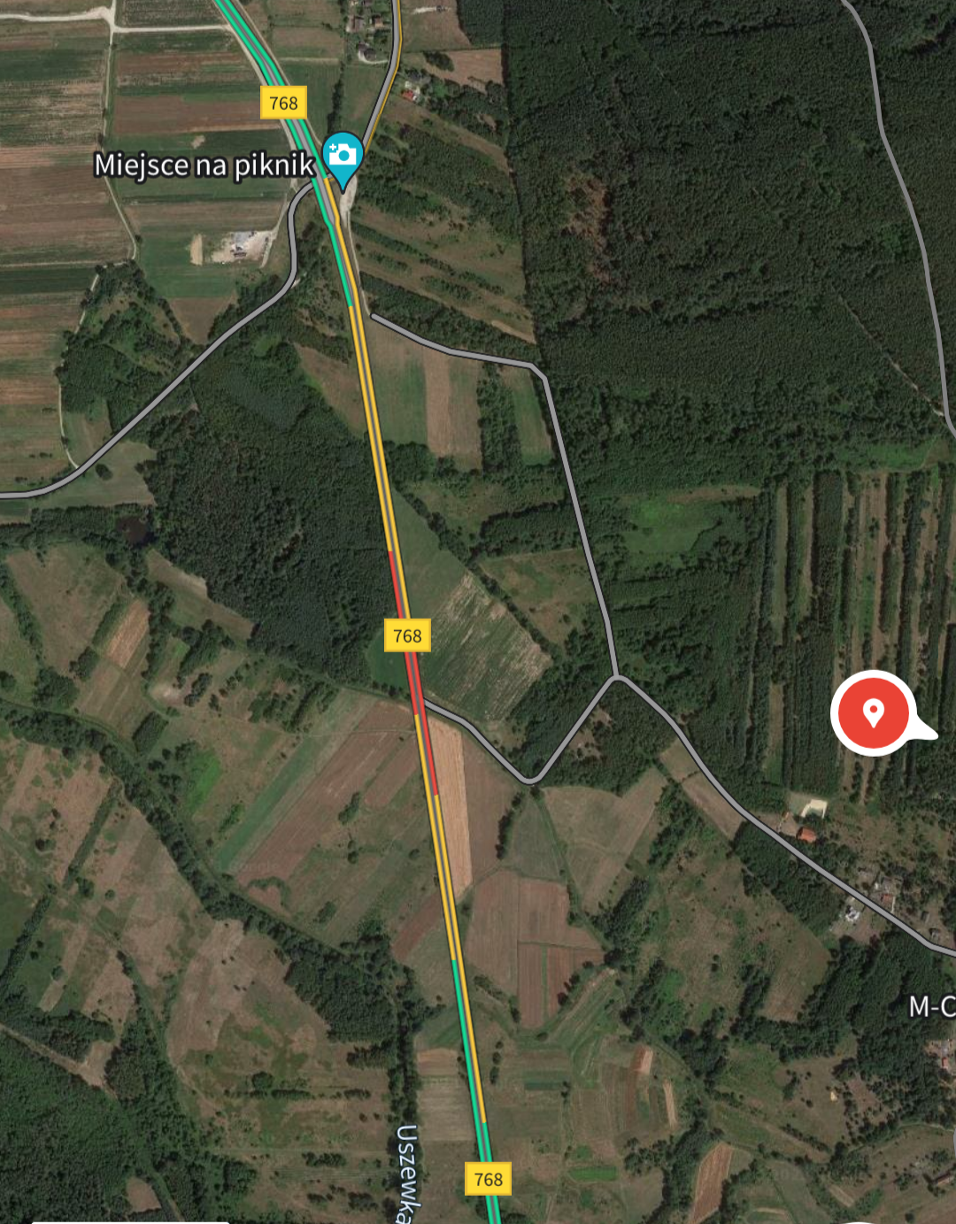 Mapa natężenia ruchu w miejscu zdarzenia około godz. 19.30.
