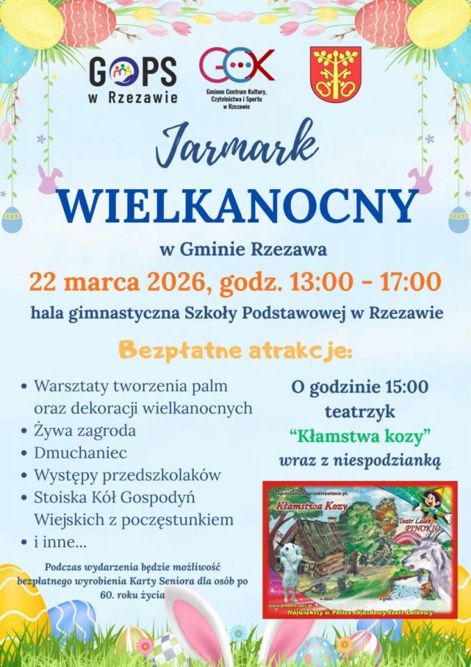 W niedzielę, 22 marca, spotkajmy się w hali gimnastycznej Publicznej Szkoły Podstawowej w Rzezawie, aby poczuć wyjątkową, świąteczną atmosferę.