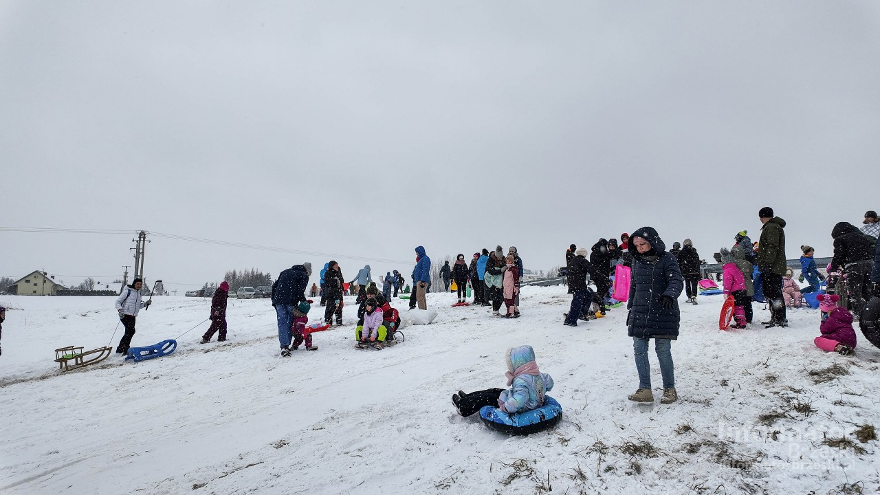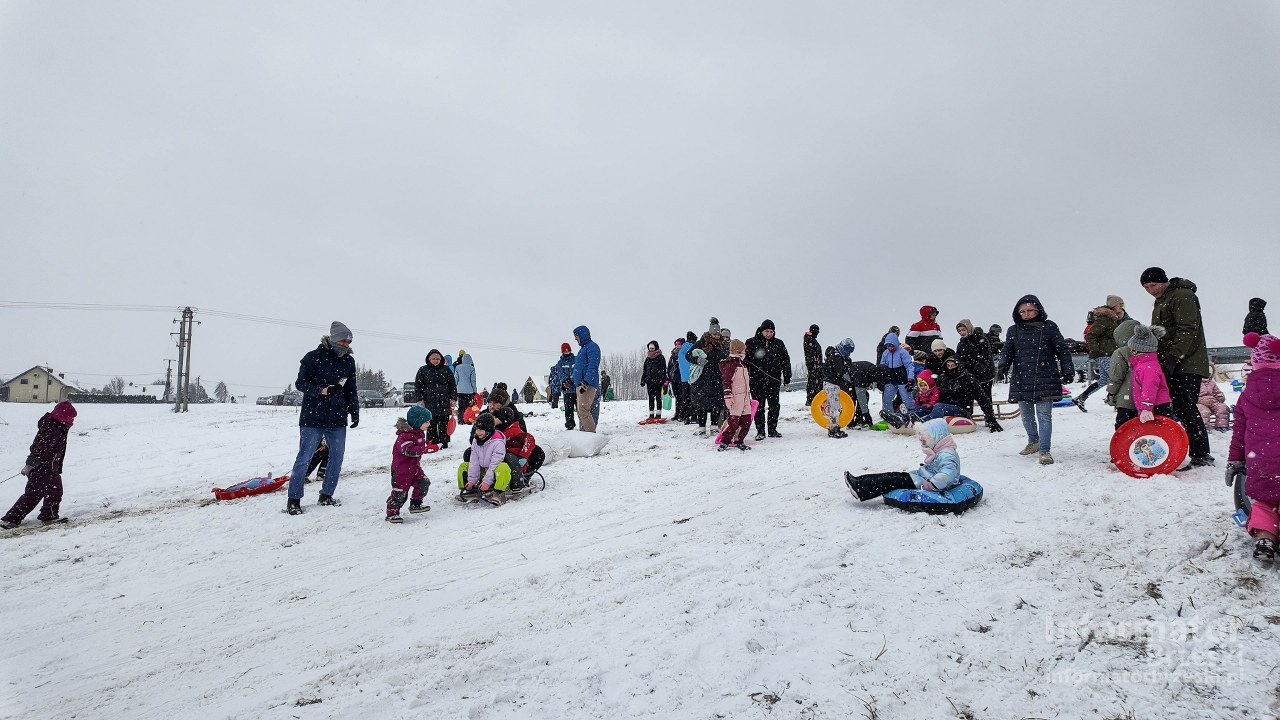 Silny wiatr i zacinający śnieg nie zniechęciły miłośników zimowej zabawy. W niedzielę 11 stycznia 2026 roku improwizowany stok saneczkowy w Sterkowcu przeżywał prawdziwe oblężenie – ponad 200 mieszkańców miejscowości i okolic skorzystało z rzadkiej okazji, by cieszyć się prawdziwą zimą.