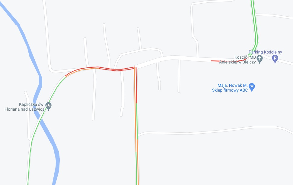Mapa natężenia ruchu – Bielcza 18 czerwca 2021 r. godz. 7.00