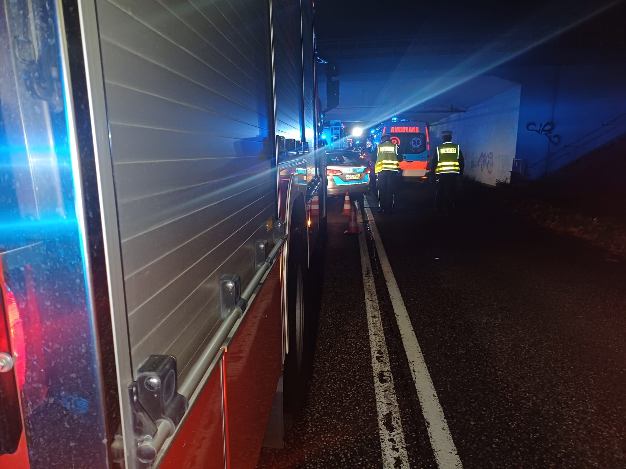 Droga na wysokości wiaduktu autostradowego została całkowicie zablokowana w obu kierunkach. Policjanci pod nadzorem prokuratora prowadzili czynności mające na celu ustalenie dokładnych przyczyn tego tragicznego wypadku.