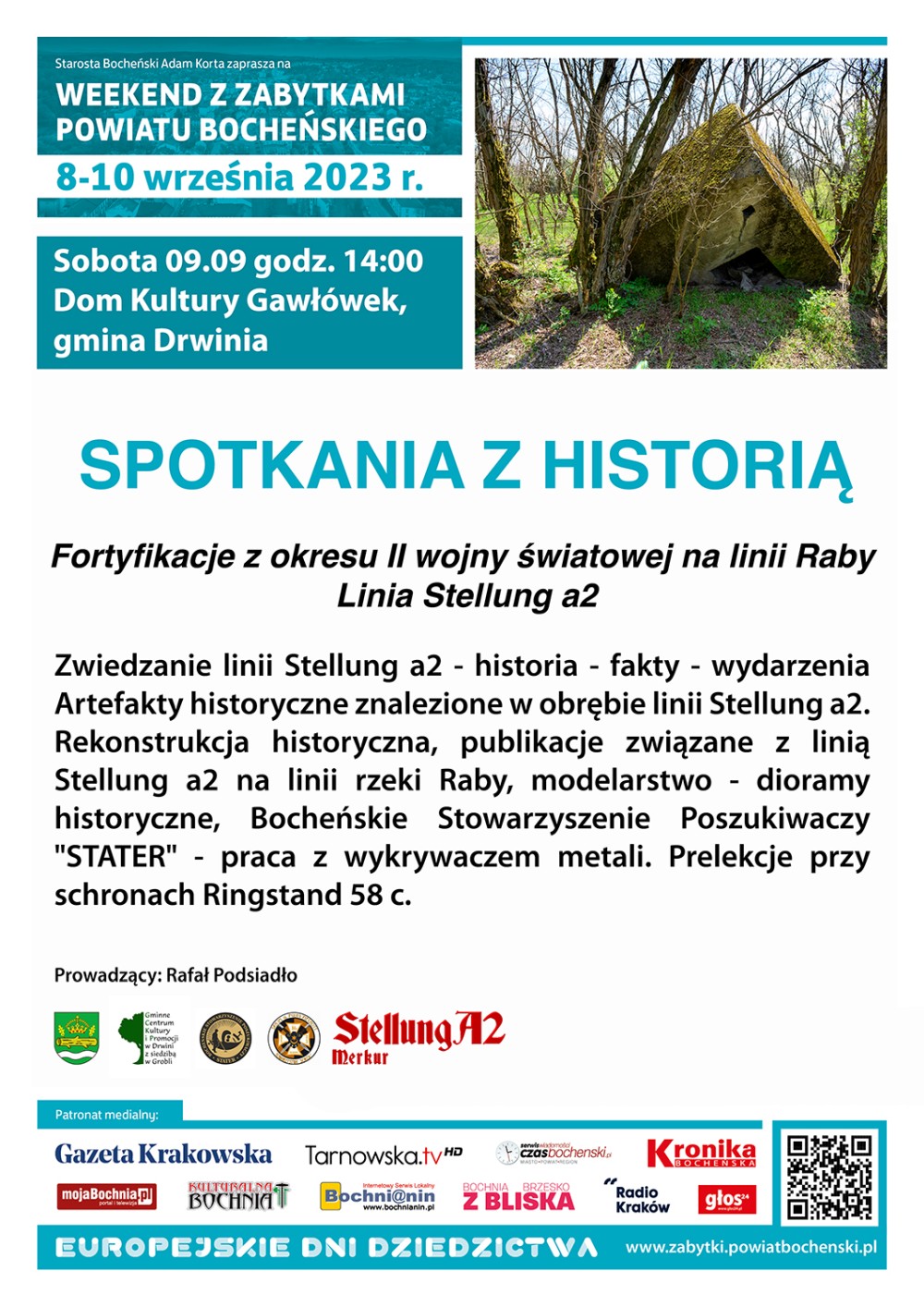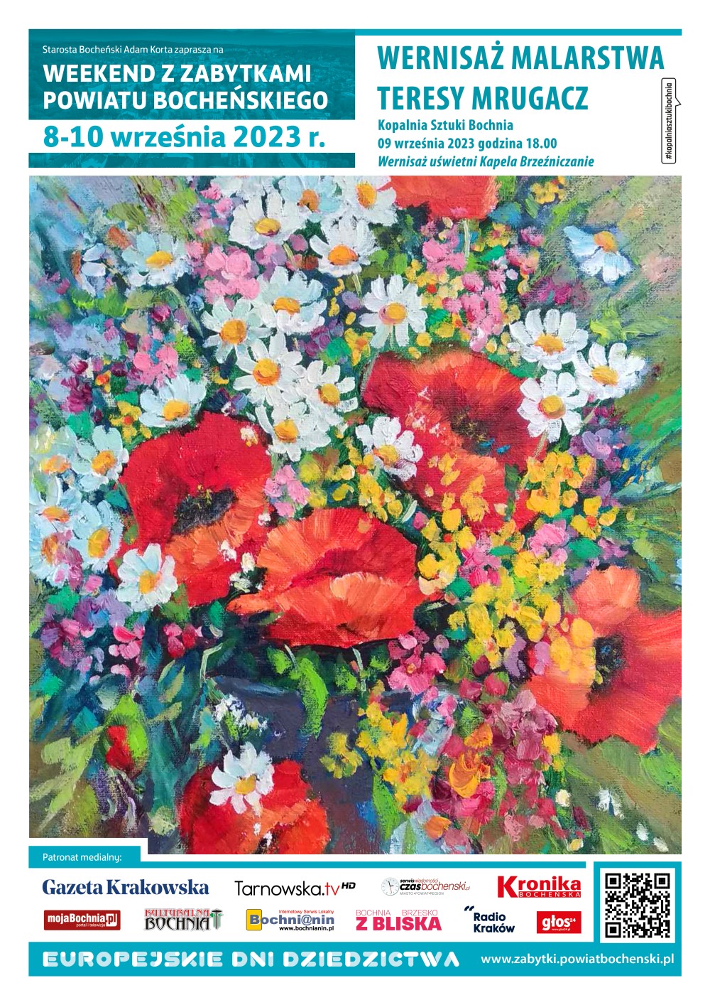 Sobota w ramach Weekendu z Zabytkami Powiatu Bocheńskiego to czas dla miłośników przygody, historii i kultury. Czeka na Was mnóstwo atrakcji w całym powiecie. Atrakcje dla dzieci? Gra Miejska w CIT w Bochni, gospodarstwo Borówkowy Rój, Ekomuzeum w Sobolowie, warsztaty w wiśnickim plastyku, archeologiczne i Muzeum Motyli. Ciekawe zabytki? Bunkry z II Wojny Światowej, Kopalnia Soli, zabytkowe kościoły, Izby Regionalne, Klasztor Karmelitów Bosych w Wiśniczu, Koryznówka oraz Zamek w Wieruszycach A może Spacery? Na Kamionną, Quest po Żegocinie ,na kamienie Brodzińskiego, po Lipnicy czy też w Bochni- szlakiem NaCl lub archeologiczny po Plantach. Dla miłośników sztuki? Bocheńskie Muzeum im. St. Fischera, Sala Maryjna w Okulicach, Kopalnia Sztuki, Wernisaż Teresy Mrugacz czy plener malarski? Jeszcze mało? To balon na bocheńskim Rynku,  tężnia zmysłów? I wiele innych…