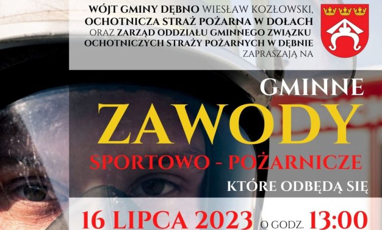 Wójt Gminy Dębno Wiesław Kozłowski, Ochotnicza Straż Pożarna w Dołach oraz Zarząd Oddziału Gminnego Związku Ochotniczych Straży Pożarnych w Dębnie serdecznie zapraszają na Gminne Zawody Sportowo – Pożarnicze.