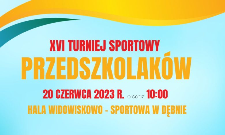 Serdecznie zapraszamy na XVI Turniej Sportowy Przedszkolaków, który odbędzie się, już w najbliższy wtorek 20 czerwca 2023 r. o godz. 10:00 na Hali Widowiskowo – Sportowej w Dębnie. Honorowy Patronat nad turniejem objął Wójt Gminy Dębno Wiesław Kozłowski.