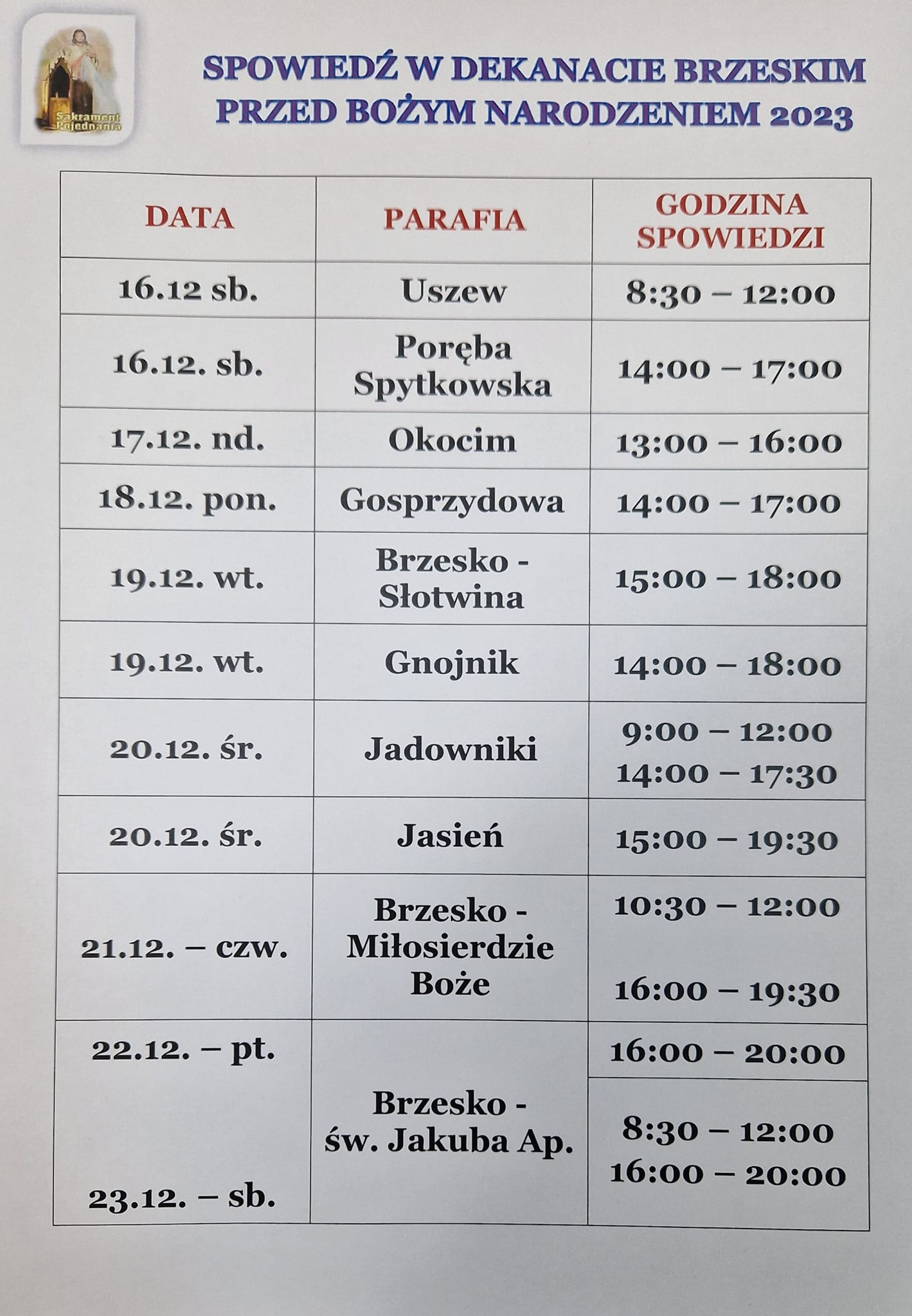 Spowiedź przedświąteczna 2023 w dekanacie brzeskim