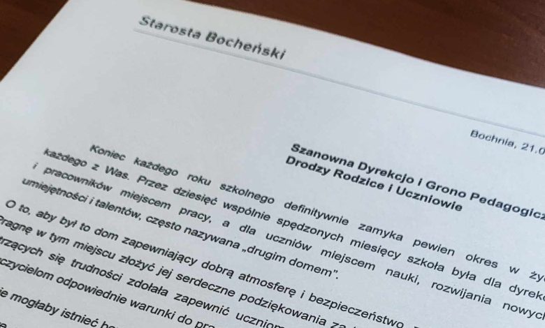 Blisko 4,5 tysiąca uczniów ze szkół dla których organem prowadzącym jest Powiat Bocheński zakończyło rok szkolny, z tej okazji Starosta Bocheński Adam Korta skierował do nich okolicznościowy list.