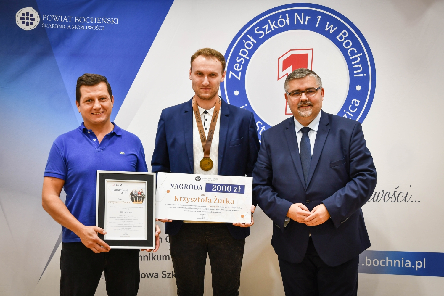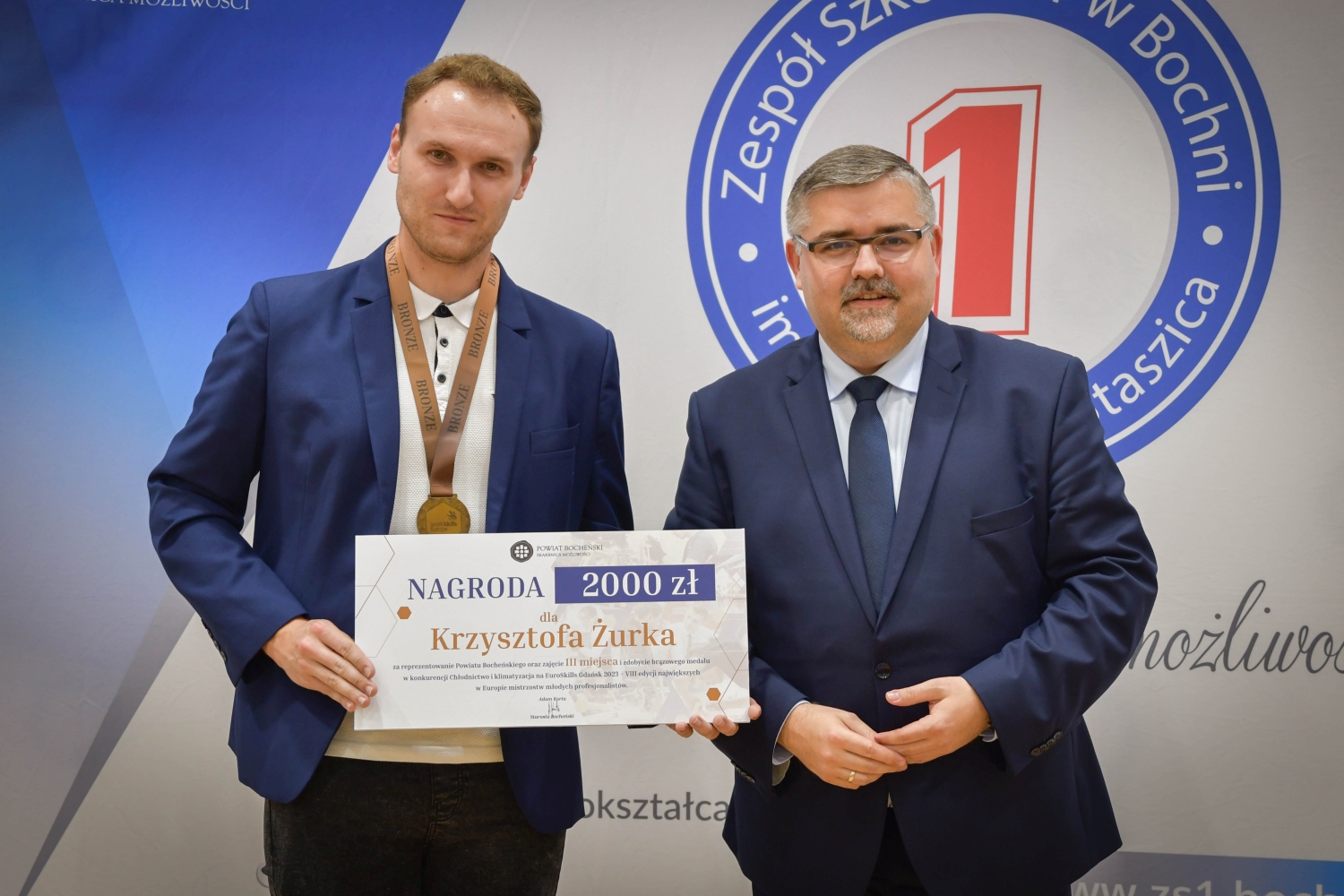 Starosta bocheński Adam Korta nagrodził Krzysztofa Żurka, brązowego medalistę i zdobywcę trzeciego miejsca podczas Euroskills 2023 w konkurencji Chłodnictwo i klimatyzacja.