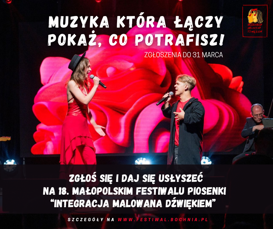 Muzyka, pasja i niezwykłe spotkania – oto, co czeka uczestników 18. Małopolskiego Festiwalu „Integracja malowana dźwiękiem”! To wyjątkowe wydarzenie, które łączy ludzi niezależnie od ich sprawności, ponownie otwiera swoje drzwi dla wszystkich, którzy kochają muzykę. Do 31 marca można przesyłać zgłoszenia w trzech kategoriach: integracyjny duet muzyczny, zespół oraz kabaret. Festiwal odbędzie się w dniach 28-30 maja, a w Jury zasiądą znane i cenione gwiazdy polskiej sceny muzycznej oraz teatralnej!