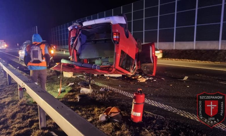 – Po przybyciu na miejsce stwierdzono, że w zdarzeniu brały udział dwa pojazdy a jeden z nich dachował i przeleciał na przeciwległy pas ruchu – informują druhowie z OSP Szczepanów.