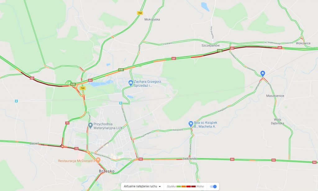 Sytuacja drogowa autostrada A4 – węzeł Brzesko godz. 16.45